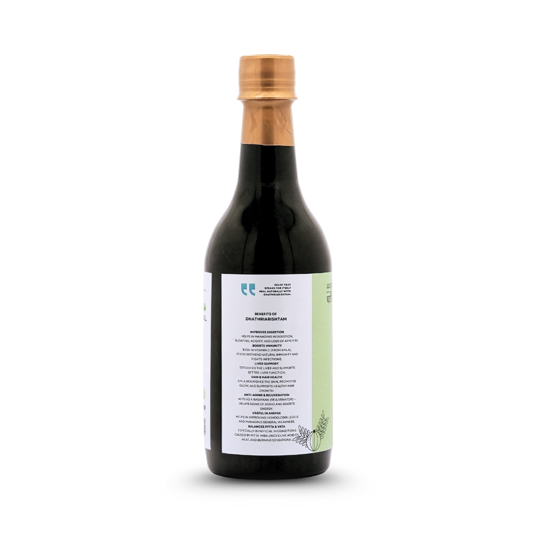 Dhathriarishtam is not just a health tonic – it is a part of Ayurvedic heritage passed down for generations. Its naturally tangy and refreshing taste makes it pleasant for daily use, while its benefits extend far beyond basic wellness. From supporting immunity and digestive health to enhancing skin radiance and hair strength, this Ayurvedic formulation is a complete wellness companion for modern lifestyles.