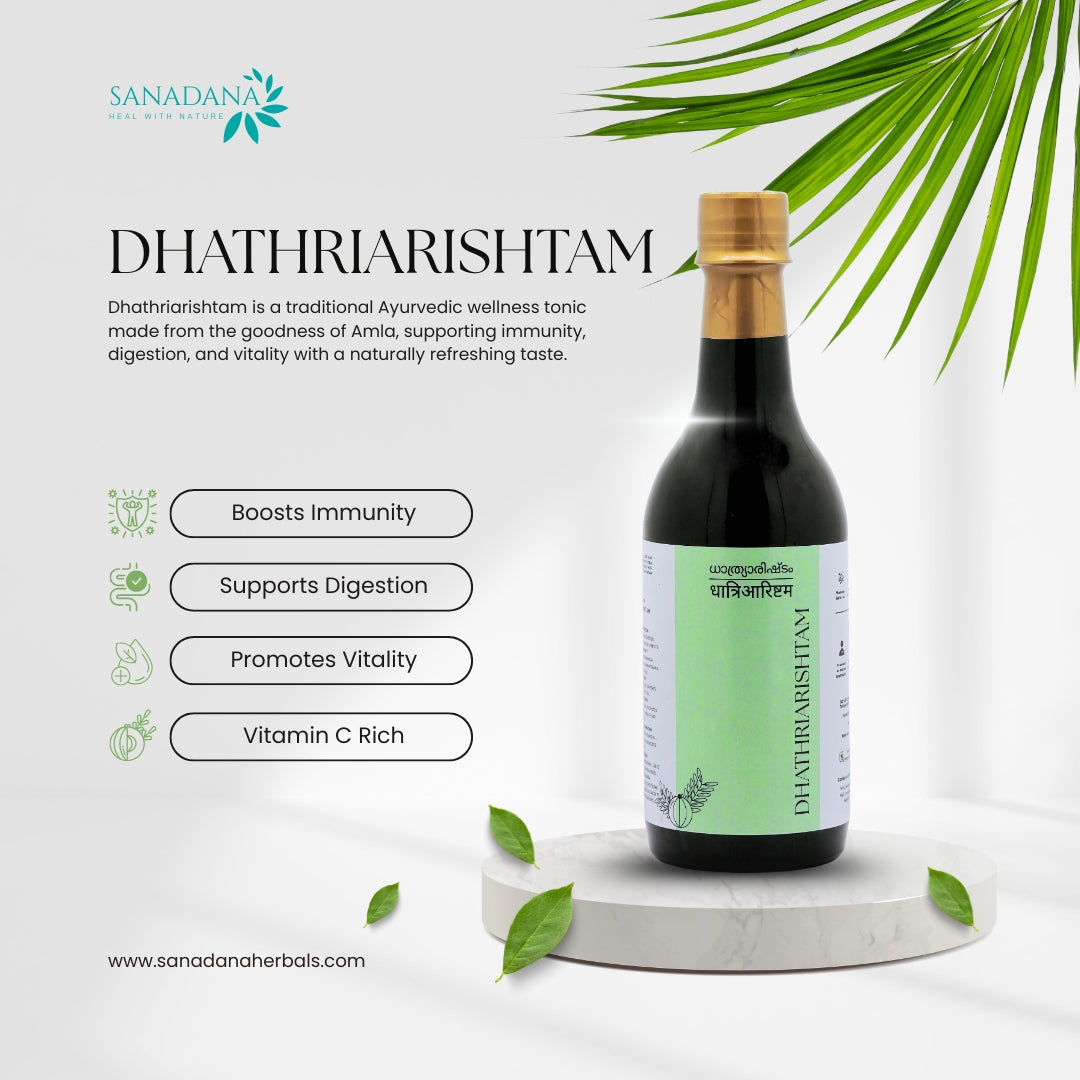 Whether you are looking to boost your immunity, maintain digestive balance, or simply feel more energized and refreshed, Dhathriarishtam offers a holistic way to restore balance and keep your body strong.